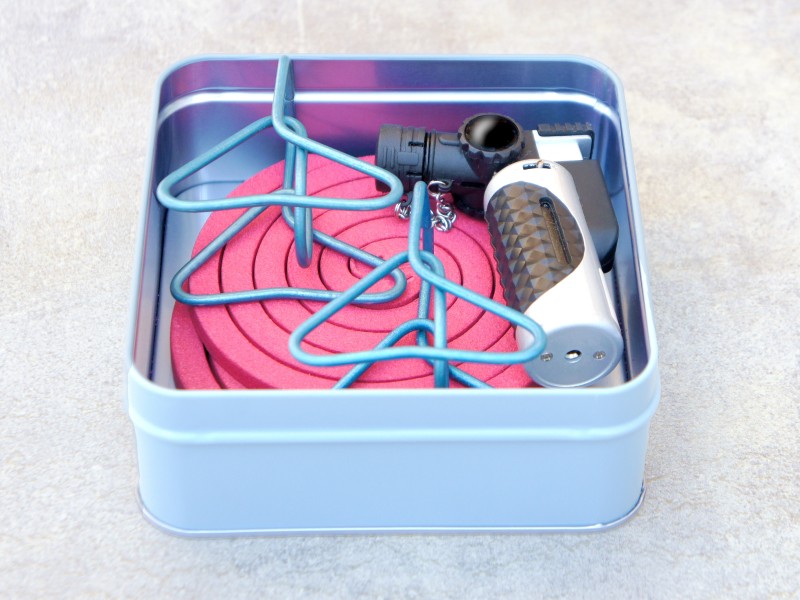 湿気をさえぎり、光を遮断するので蚊取り線香を保管するのに最適。持ち運ぶ時にも便利。
